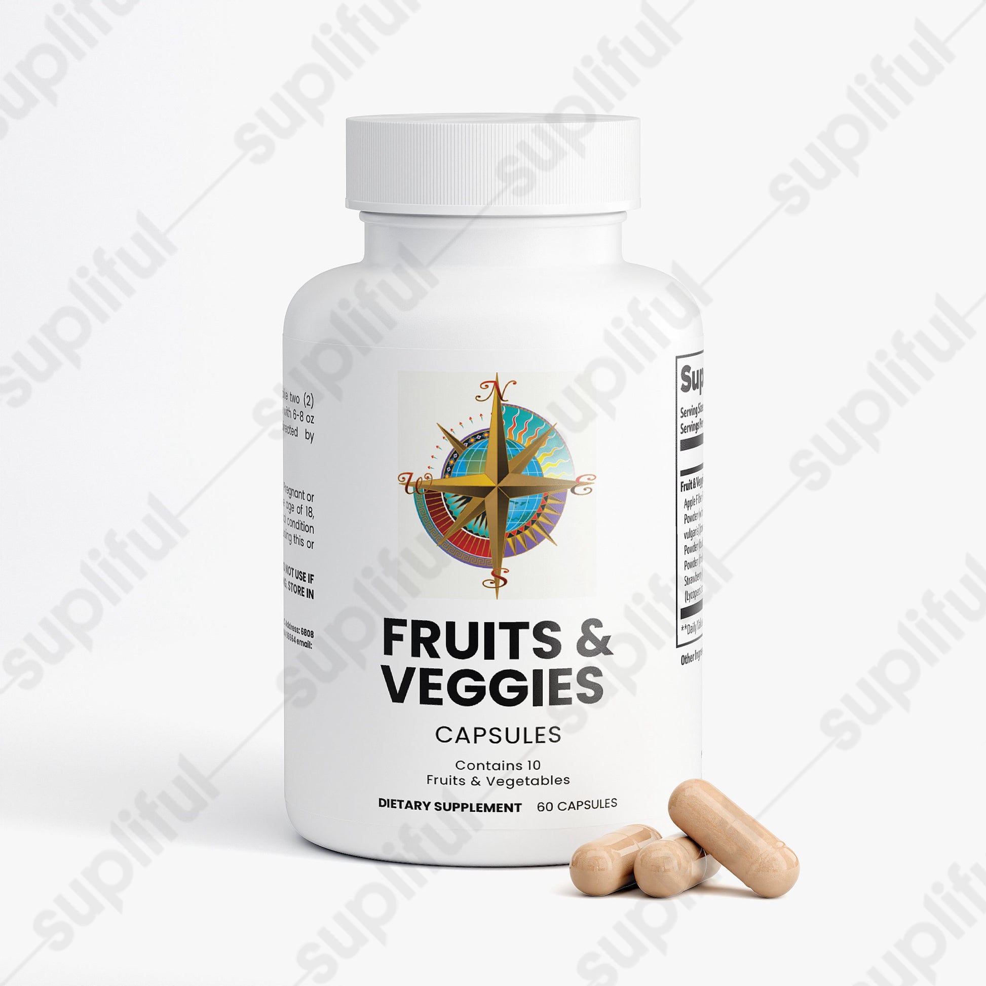 Ingredients: Apple Fiber Powder (Malus pumila) (fruit), Carrot Powder (whole carrot), Beet Root Powder (Beta vulgaris) (root), Blueberry Powder (fruit), Garlic Powder (bulb), Ginger Powder (root), Raspberry Powder (fruit), Red Bell Pepper Powder (fruit), Strawberry Juice Powder (fruit), Tomato Extract (Lycopersicon esculentum) (fruit), Gelatin (capsule), Brown Rice Flour.